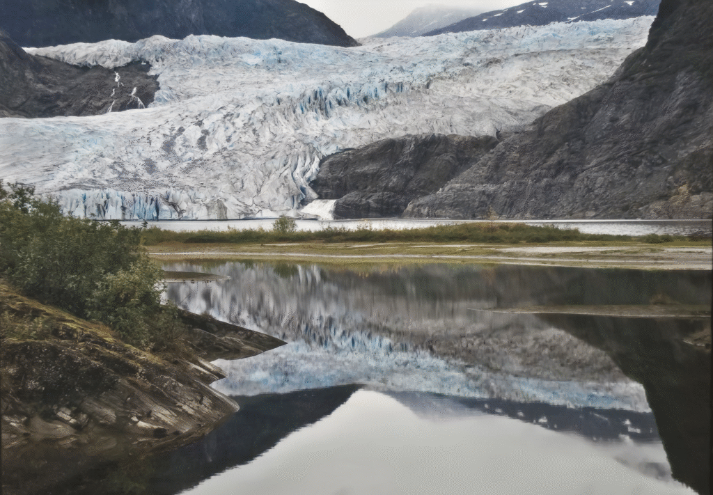 This is an actual picture of the Mendenhall Glacier and you can learn more about it